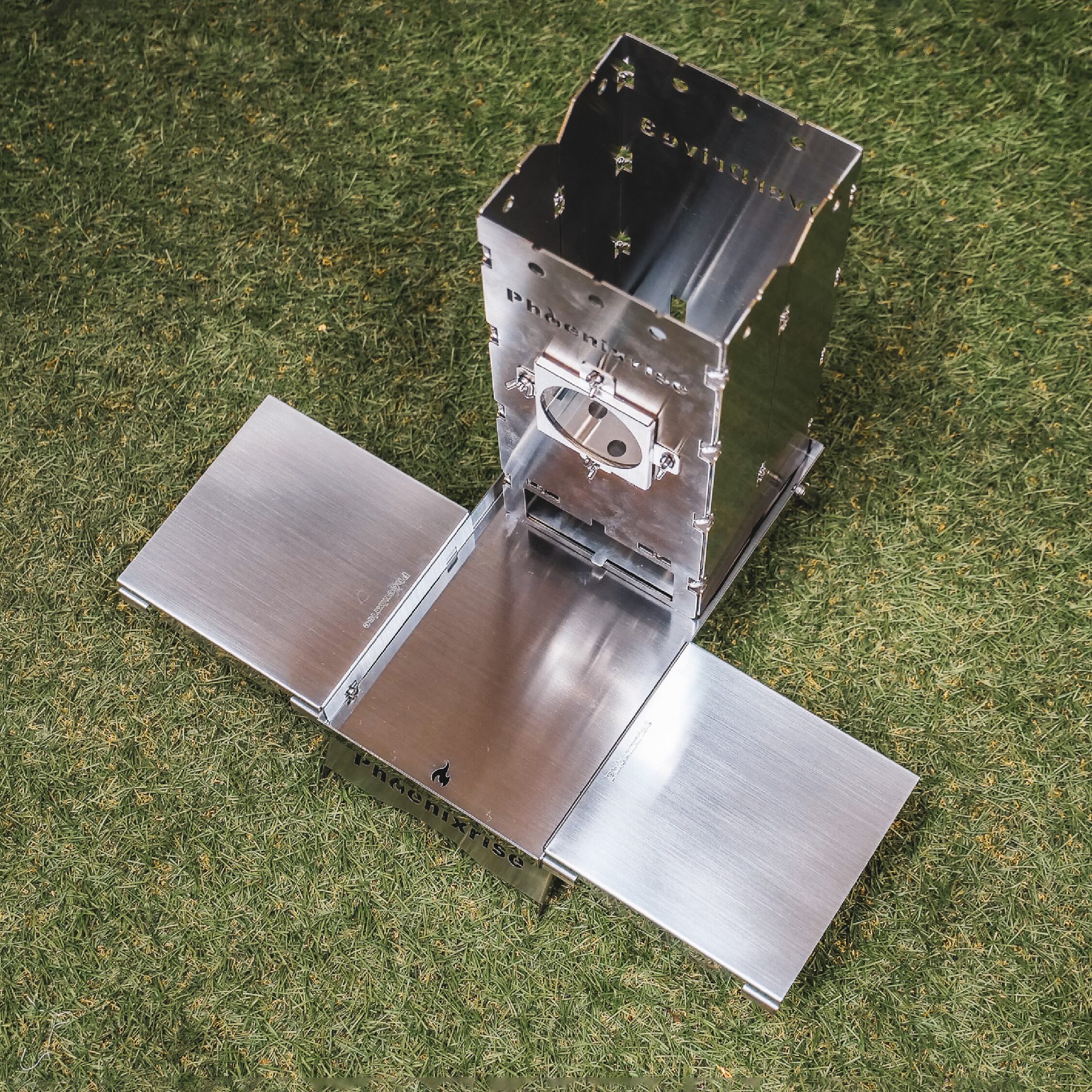 フェニックスライズ製焚火台「OverDrive3」の専用ハードケース。 OverDrive3のガラス面を保護する目的で生まれました。 焚火台を取り出した後は、五徳スタンド兼テーブルとしてお使いいただけます。