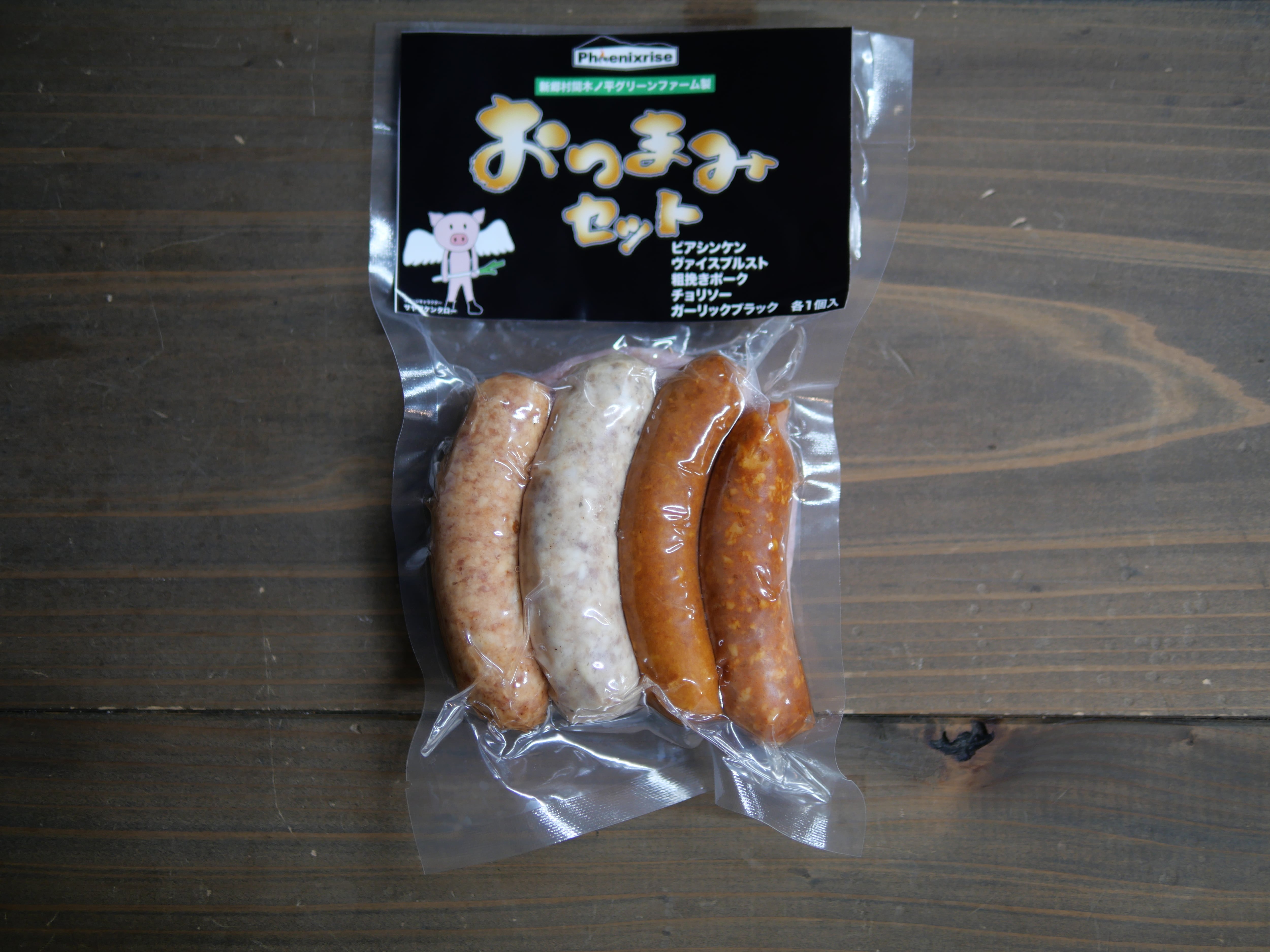 青森県新郷村グリーンファーム製のビアシンケン、ヴァイスブルスト、粗挽きポーク、チョリソー、ガーリックブラックそれぞれ個性の異なる5本を詰め合わせました。