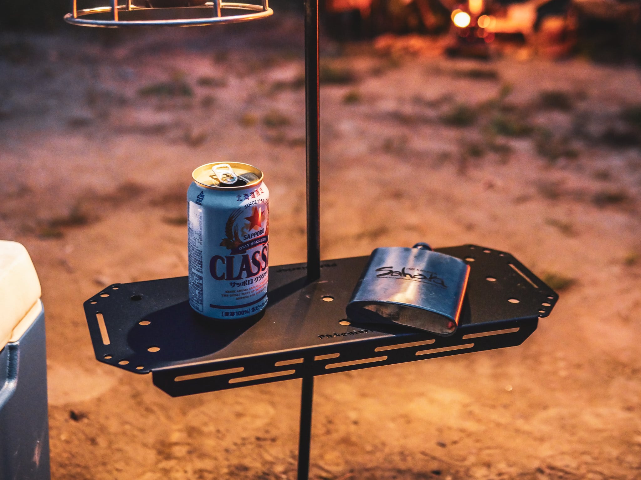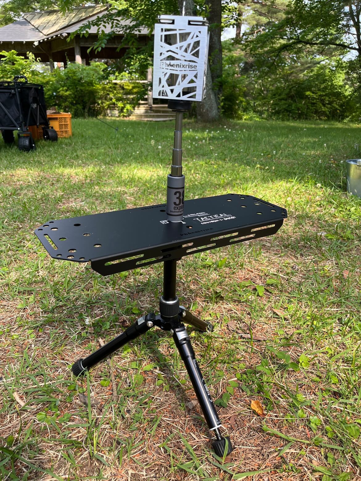 フェニックスタクティカルテーブルが無くても、ランタンスタンドや三脚に取り付けることで小型テーブルとして使用することが出来ます。