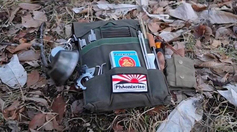 焚火台「フェニックスグリル」に付属する収納袋をベースにサイズを拡張し、収納ポケットを追加。より多くのギアを整理しやすくなりました。