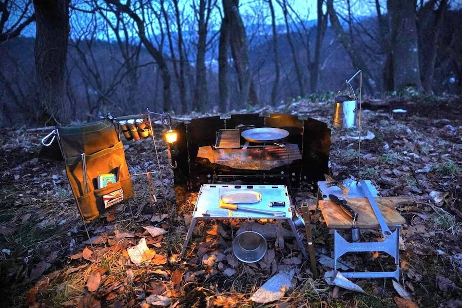 「焚き火を中心に、装備を組み上げる“操縦席”のような焚き火システム」です。